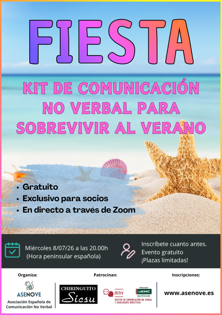 Nuestro Comité Ejecutivo ha preparado un evento gratuito exclusivo para nuestros socios en el que veremos algunas claves de comunicación no verbal que nos ayudarán a pasar mejor el verano.