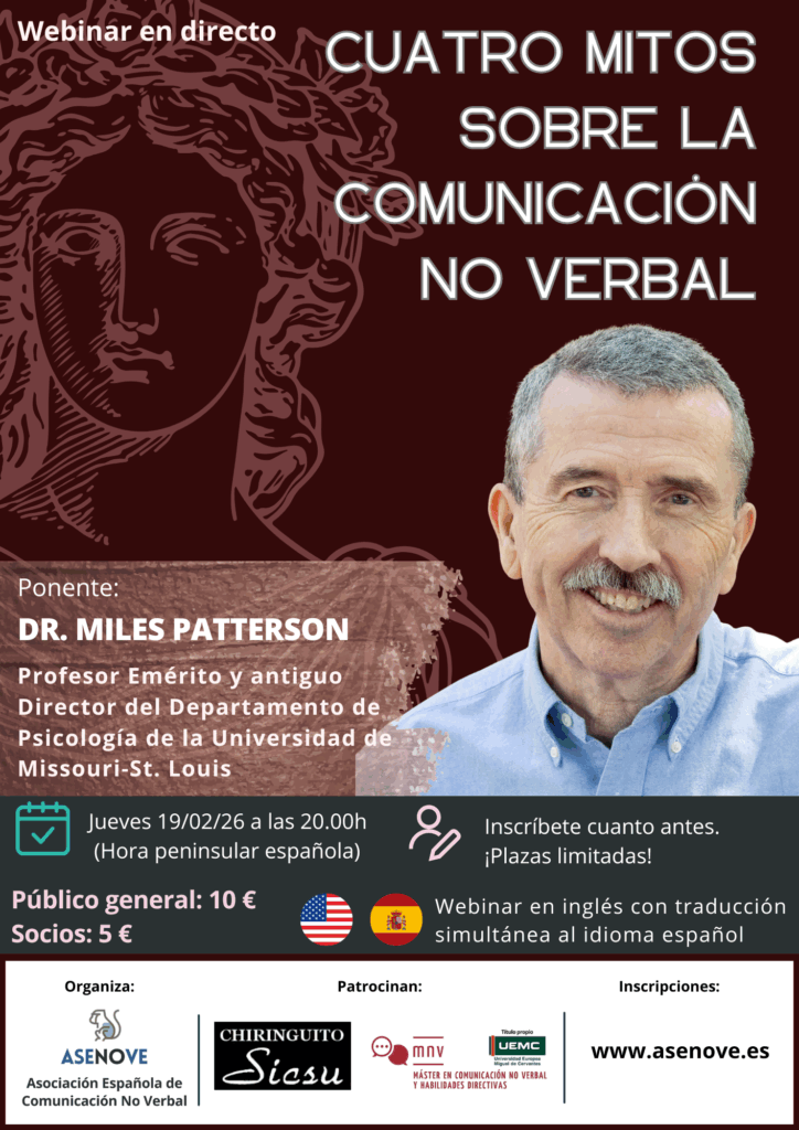 A lo largo de las últimas décadas, la investigación y la teoría sobre la conducta no verbal han ampliado nuestra comprensión de los patrones y funciones de la comunicación no verbal. Patterson, junto a otros colegas, han señalado cómo este progreso se ha visto obstaculizado por presunciones persistentes sobre el comportamiento no verbal que provienen tanto de la “sabiduría recibida” como de evidencias defectuosas. En este webinar, el Dr. Patterson analiza cuatro “mitos” centrales presentes en la investigación sobre la comunicación no verbal y en la aplicación práctica de esa investigación.